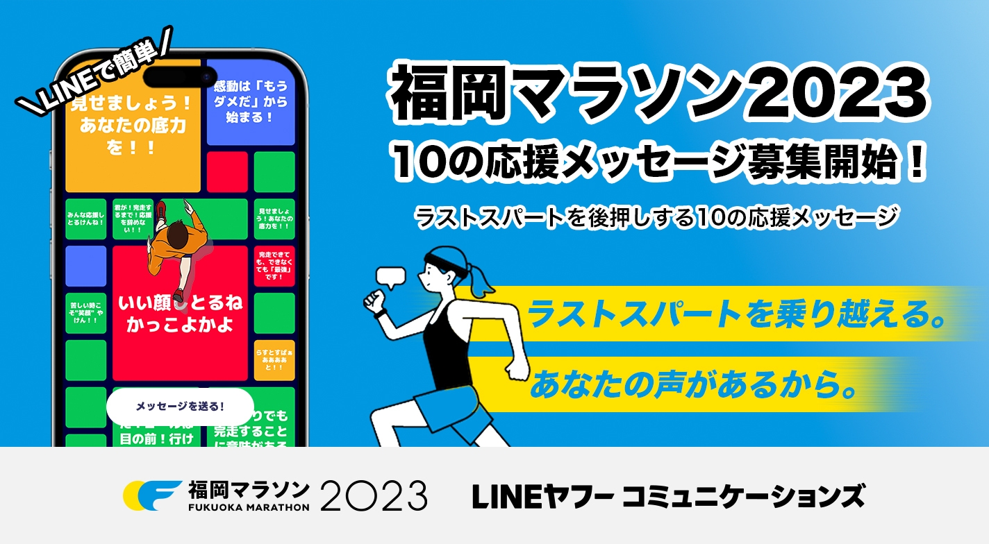 LINEヤフーコミュニケーションズ株式会社(以下 LINEヤフーコミュニケーションズ)、LINEヤフー株式会社(以下 LINEヤフー)は、2023年11月12日に開催される福岡マラソン2023にOFFICIAL COMMUNICATION PARTNERとして参画します。