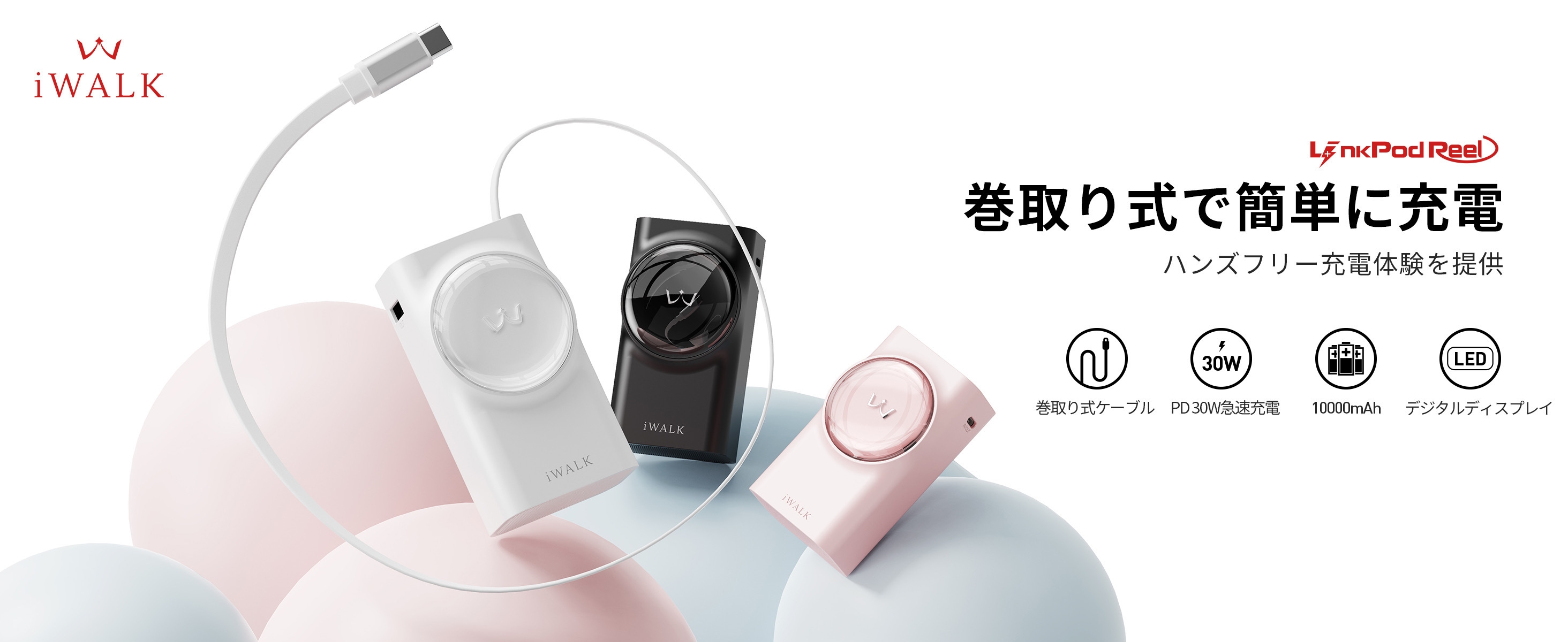【新学期・大学進学準備セール】 驚異の小型モバイルバッテリー iWALK LinkPod Reel 30W - 魔法の70cm伸縮ケーブル搭載&最大50%オフ!