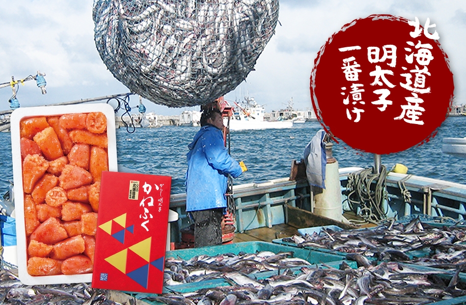 その中でもかねふくの「北海道産明太子」は、今冬獲れた<新物原料>だけを使用した超稀少で特別な明太子です。極寒の北海道の海で取れたスケソウダラを、水揚げ後すぐに漁場近くの工場で採卵、塩漬けを行うことで生まれる、極上のつぶつぶ感。通常の明太子では実現できない弾ける粒立ちと贅沢な味わいをぜひご賞味ください。
