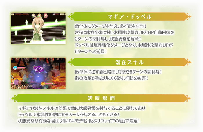 対象の魔法少女を編成して本イベントクエストをプレイする際にステータスを特殊な状態に強化することができます。