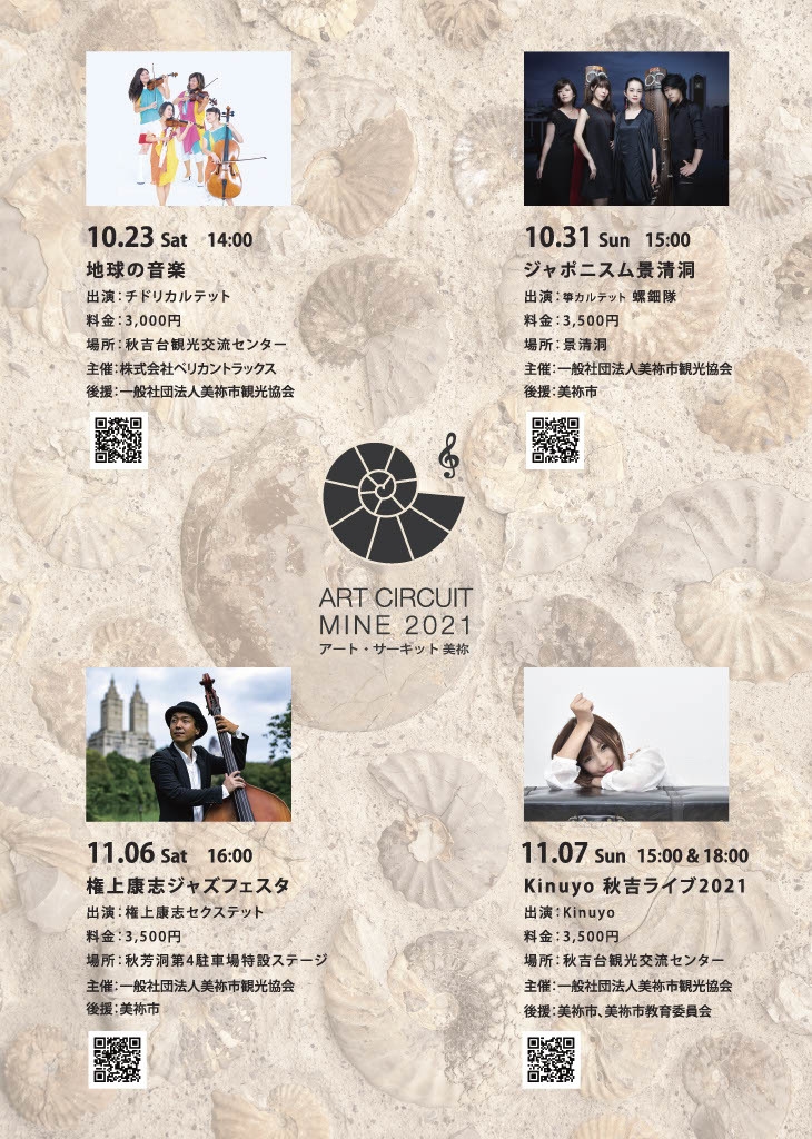 3億5千万年の悠久の時間を音楽と洞窟と共に体感していただき、MINEの素晴らしさを感じていただけるイベントにしたい。日本の伝統音楽の融合、ジャズの深みと歴史とのシンクロ、現代のJ-POP、クラシックの優雅で洗練された弦楽四重奏(カルテット)と異なる音楽をシリーズでご堪能いただきたい。