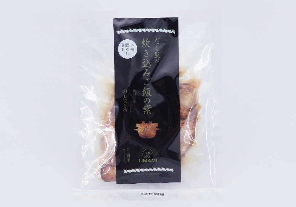 ON THE UMAMIはダシづくりを追求していく中で「うまみ」成分の科学的な分析と、職人の感性や技術力の双方に目を向け商品開発を進めてきました。今回、発売するだし屋の炊き込みご飯の素 のどぐろも、のどぐろの持つ旨みと、合わせる昆布水や本枯鰹節のおだしの旨みの相乗効果を引き出すことに、試行錯誤を重ね商品化に至りました。新潟県の名物でもあるのどぐろを使用しているため、新たな新潟の名産品、お土産として根付いていくことを目指しています。