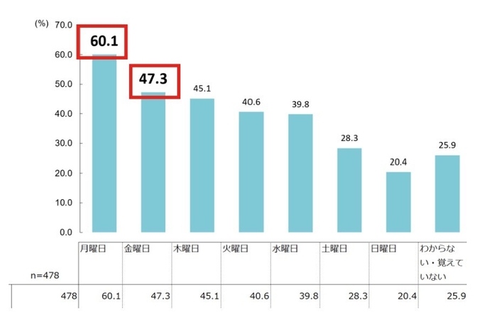 1週間の中で最も疲れを感じる曜日は、月曜と金曜。週末に朝の持ち越し疲労予防体験