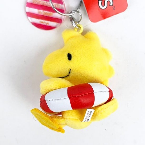 夏はやっぱボーダーで決まり♪スヌーピー&ウッドストックのサマーマスコットは涼し気なアクリルチャーム付きで浮き輪。