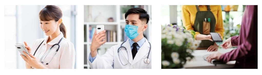 端末使用イメージ(左)、端末使用イメージ(中)、NFC使用イメージ(右)