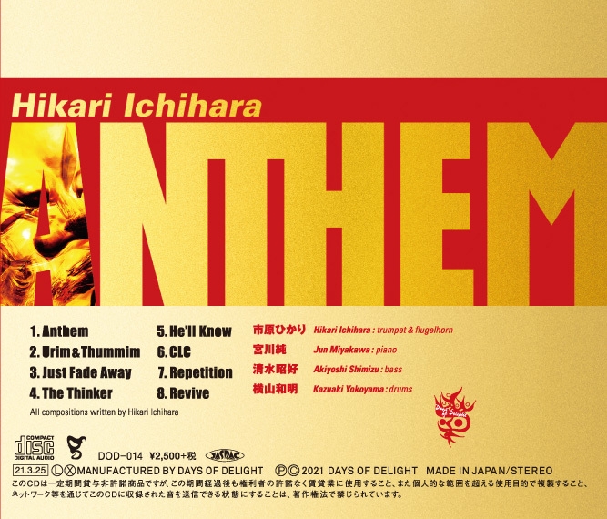 Days of Delight(ファウンダー&プロデューサー:平野暁臣)は、独自の世界観と唯一無二の音色で人気を博す女性トランペッター・市原ひかりの新譜『アンセム』を3月25日に発売します。