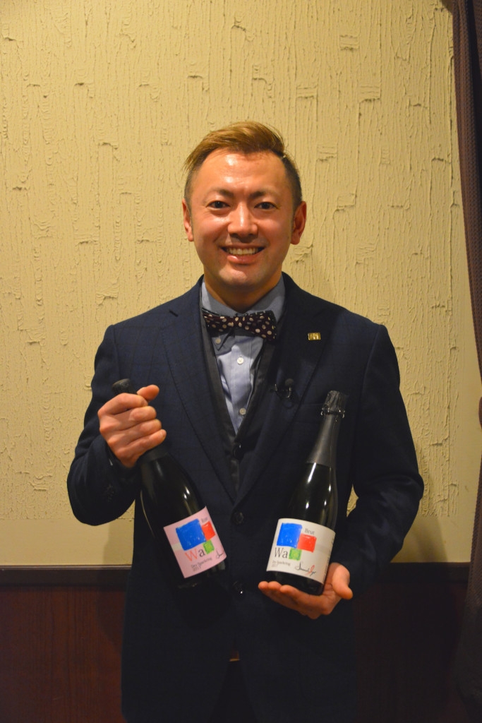 3人目は、ワイナリー「澤内醸造」の代表、澤内(さわうち) 昭宏さん。市内にあるイタリアンレストラン「リストランテ澤内」のオーナーシェフですが、新たにワインの醸造に挑戦しています。八戸産ブドウでつくるワインについて「その土地で栽培されたブドウのワインは、その土地で採れた食材と必ず合う。気張らずに八戸産の農作物、畜産物や魚介といった多様な食材に合わせてワインを楽しんでほしい。」と地元の食材との組合せを勧めてくれました。