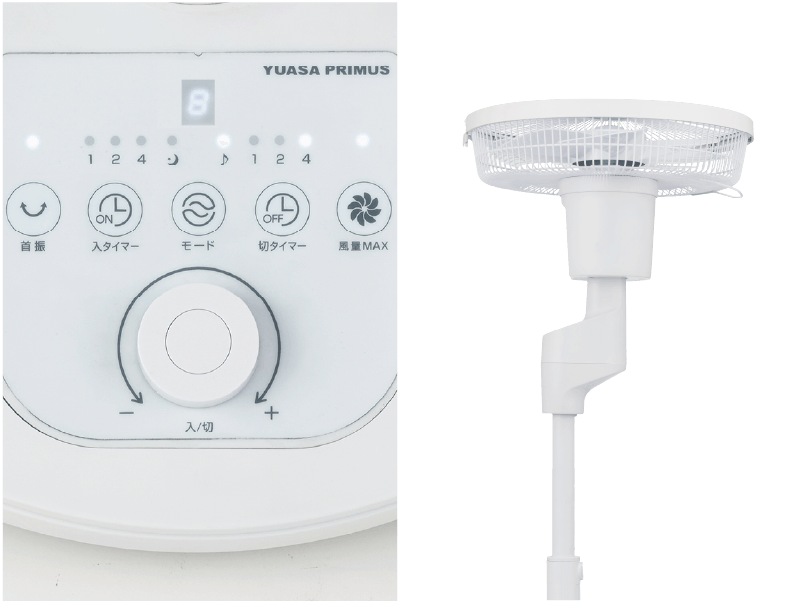 DCモーターを搭載した本製品は、8段階の細かい風量制御が可能で、自然な風に近い極弱い微風から強風までより好みに合わせた風量に調整できます。