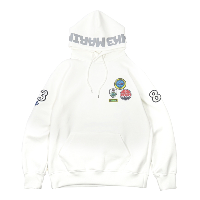 フード部分にはヨットのイラストが入ったmutaロゴがプリントされています。