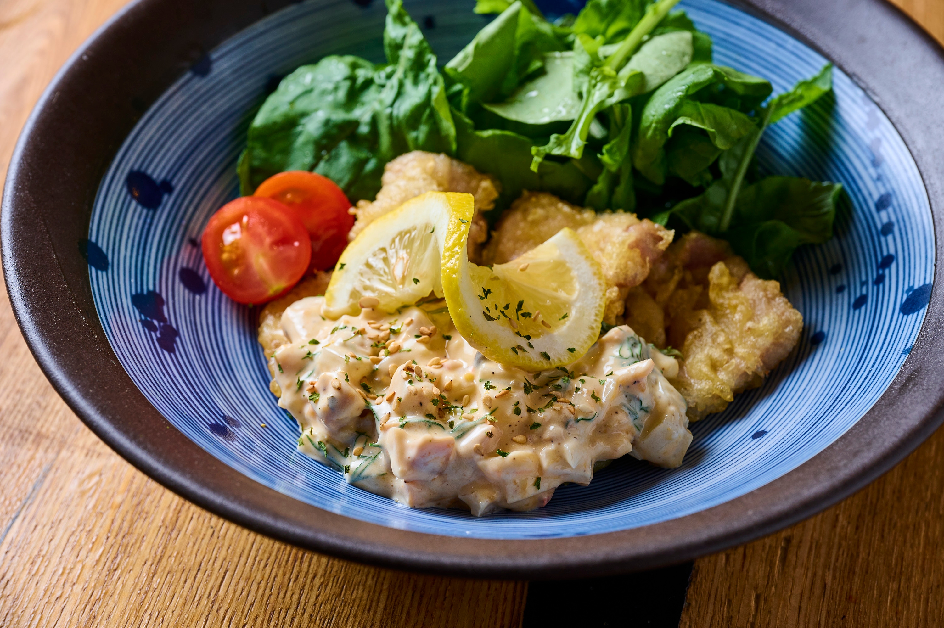 【コラボメニュー】TOKYO X肩ロース天 ~小笠原レモンと烏骨鶏卵のタルタル添え~/1,280円(税込)