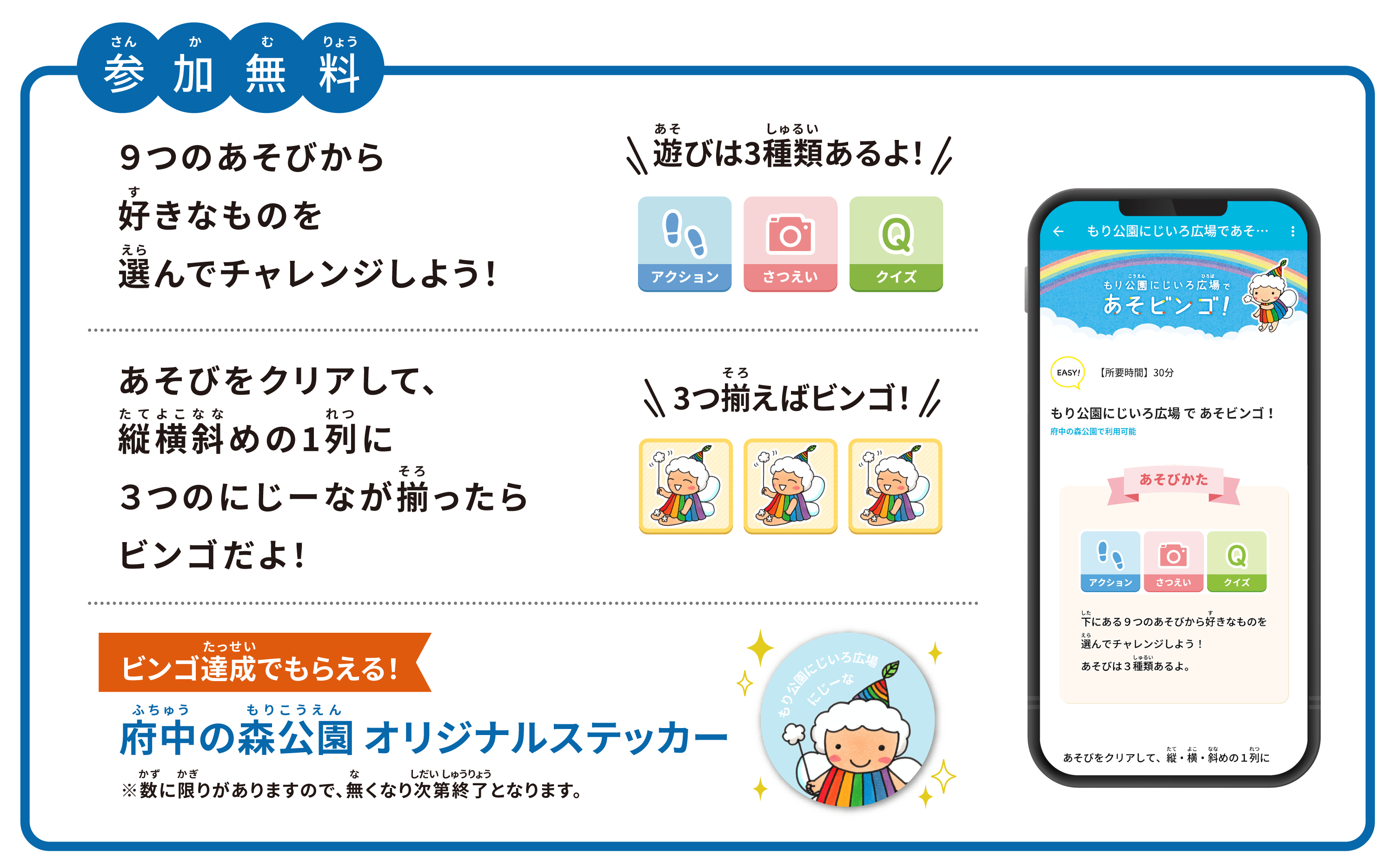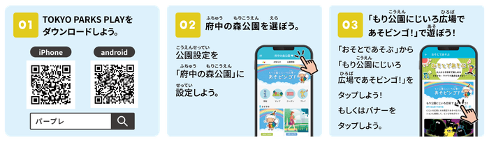 【2/1(木)配信スタート】東京都公園協会公式アプリ「TOKYO PARKS PLAY」で、遊びながら公園を知ることができるビンゴ形式コンテンツ『府中の森公園~もり公園にじいろ広場であそビンゴ!~』をリリース!!
