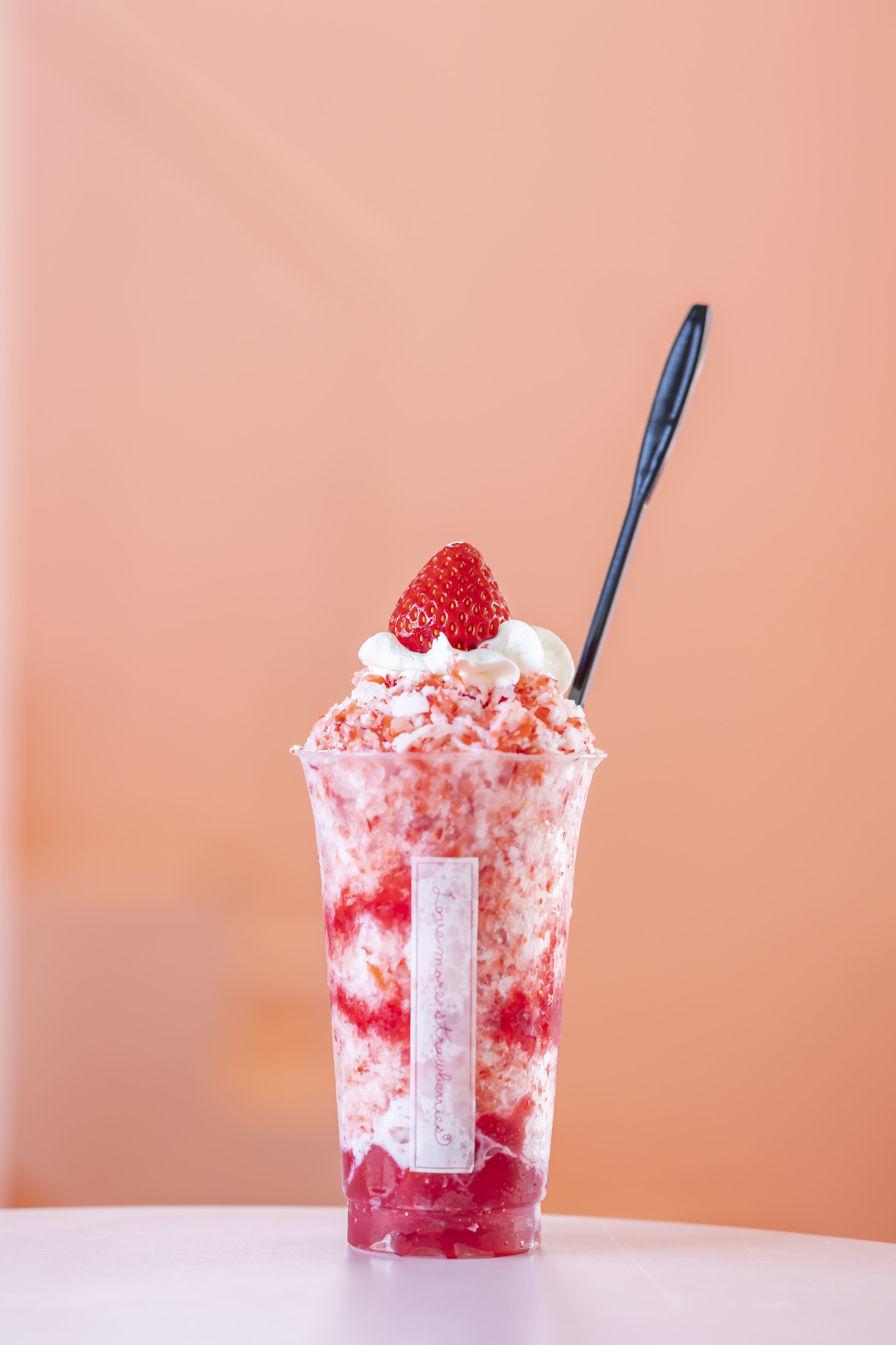 昨年は約5,000個も売れた!食べ歩きにもオススメの「けずりいちごおり」が今年も登場しました。静岡県産いちごをまるごと凍らせた削りいちごの甘酸っぱさとミルク氷の甘みがぴったりです。底にはいちごゼリーが入っているので、食感の違いと爽やかさで最後のひとくちまで飽きずにいちごの美味しさをお楽しみいただけます。