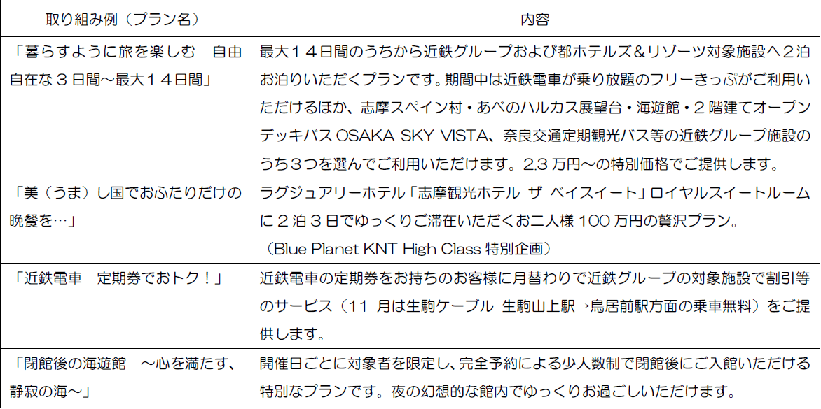 観光特急「しまかぜ」で行くプレミアムツアーや近鉄百貨店の夏の福袋など60以上のプランをご用意しており、今後もさらに充実してまいります。