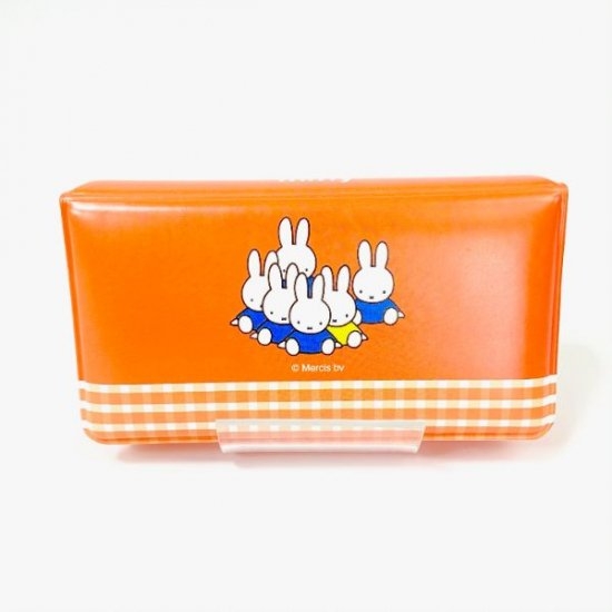 デザイン違いには、オレンジカラーのセットもご用意しています。こちらには、ミッフィーが並んでお散歩中のイラストが入っていて、ギンガムチェックもオシャレです。
