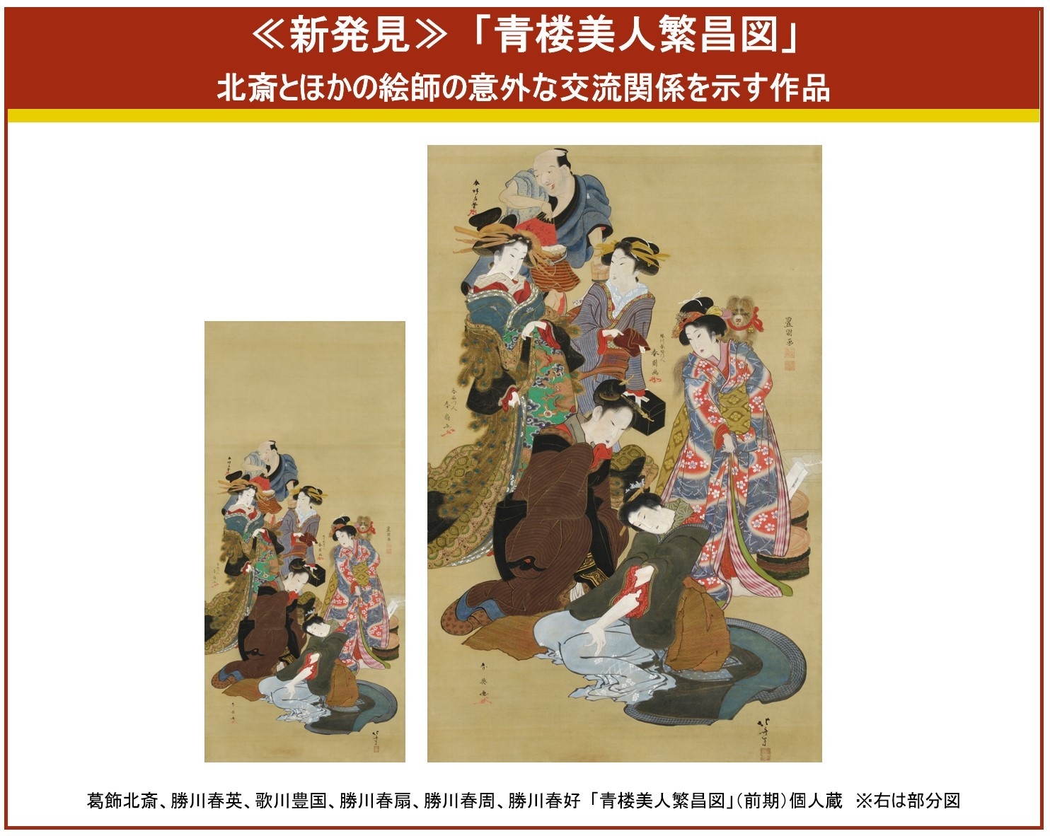 浮世絵師の中でも葛飾北斎は肉筆画の制作数が大変多いことが挙げられます。北斎は和漢洋などさまざまな画法を吸収し、和漢の古典伝説や動植物、神仏など非常に幅広い画題を手がけました。本展では、北斎とほかの絵師の意外な交流関係を示す新発見の作品や、初公開の作品など北斎肉筆画も多数ご堪能いただきます。