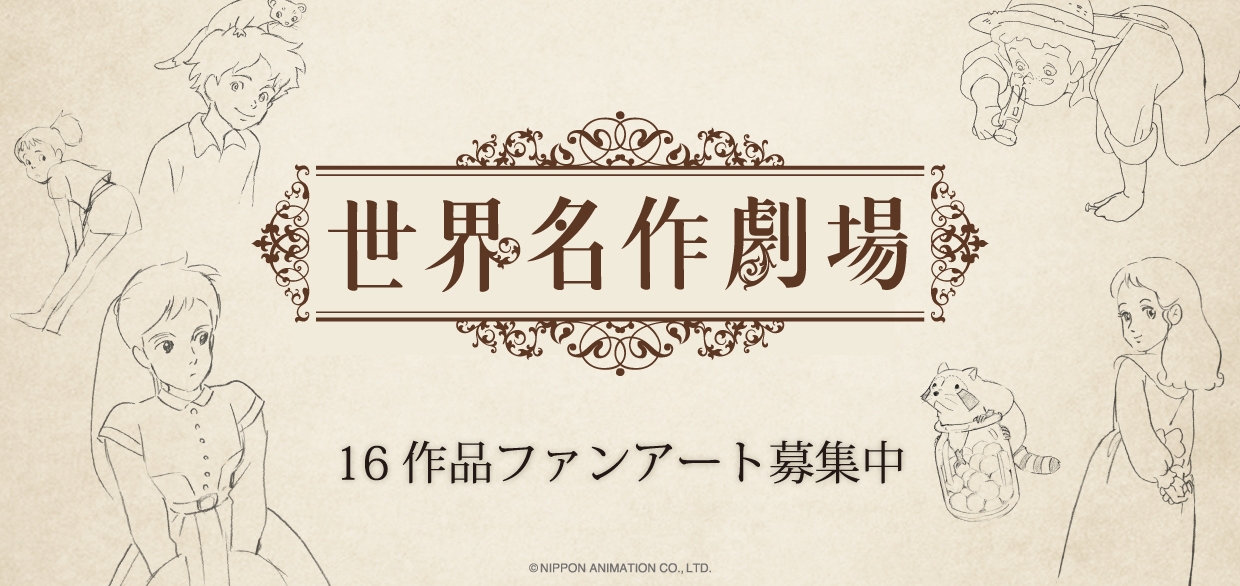 50周年に先駆け、世界名作劇場シリーズの中から下記16作品のファンアートを募集します。