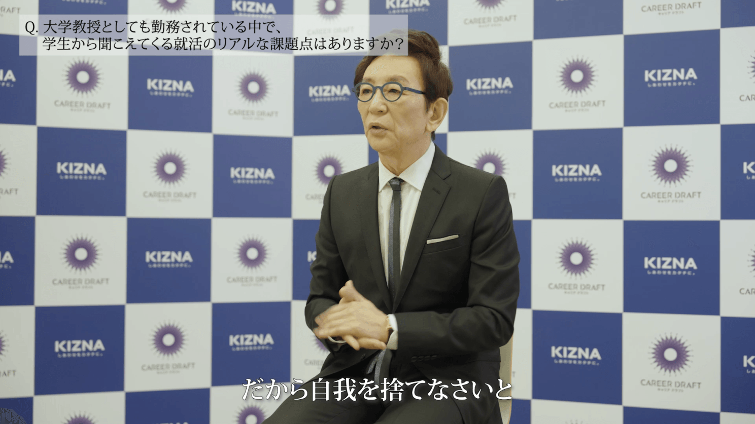 この度、番組ファシリテーターを務める古舘さんにインタビューを実施。「ドラフト型採用×TV番組」というコンセプトや出演した就活生を見て感じたことについてうかがいました。また、アナウンサーという立場で就活の変遷を見てきた古舘さんだからこそ思う、今と昔の就活の違いや就活の悪しき習慣、さらに大学教授としても勤務されている中で、学生から聞こえてくる就活のリアルな課題点についてもお話しいただきました。「就職戦線の個性、個性、個性、自分、自分、自分という戦い方に疑いをかけた方が良い」「自分が設定した自分の奴隷になってしまっている」と、現代の就活の在り方について、熱い思いを語りました。