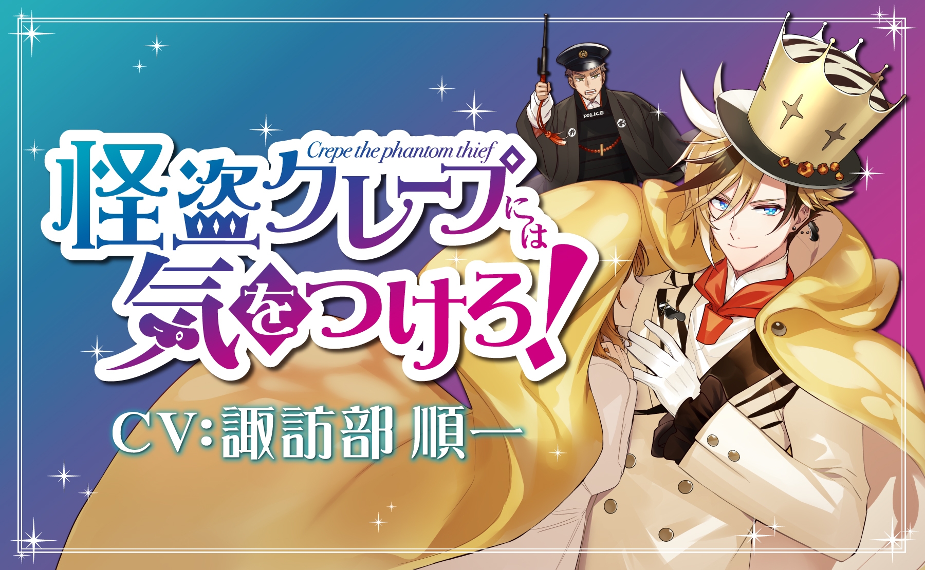 本作は、約30年前から“クレープおじさん”として、変装していた怪盗クレープ(本名:愛川温/あいかわつつむ)との音声シミュレーションゲームです。怪盗クレープは、見た目は若いイケメンですが、中身は55歳のおじさんというユニークなキャラクター。その姿には、旧パッケージに描かれている、つぶらな瞳を持ったおじさんの面影は一切ありません。怪盗クレープの声は声優・諏訪部順一さんが担当します。心奪われる甘いボイスを聴きながらお楽しみください。