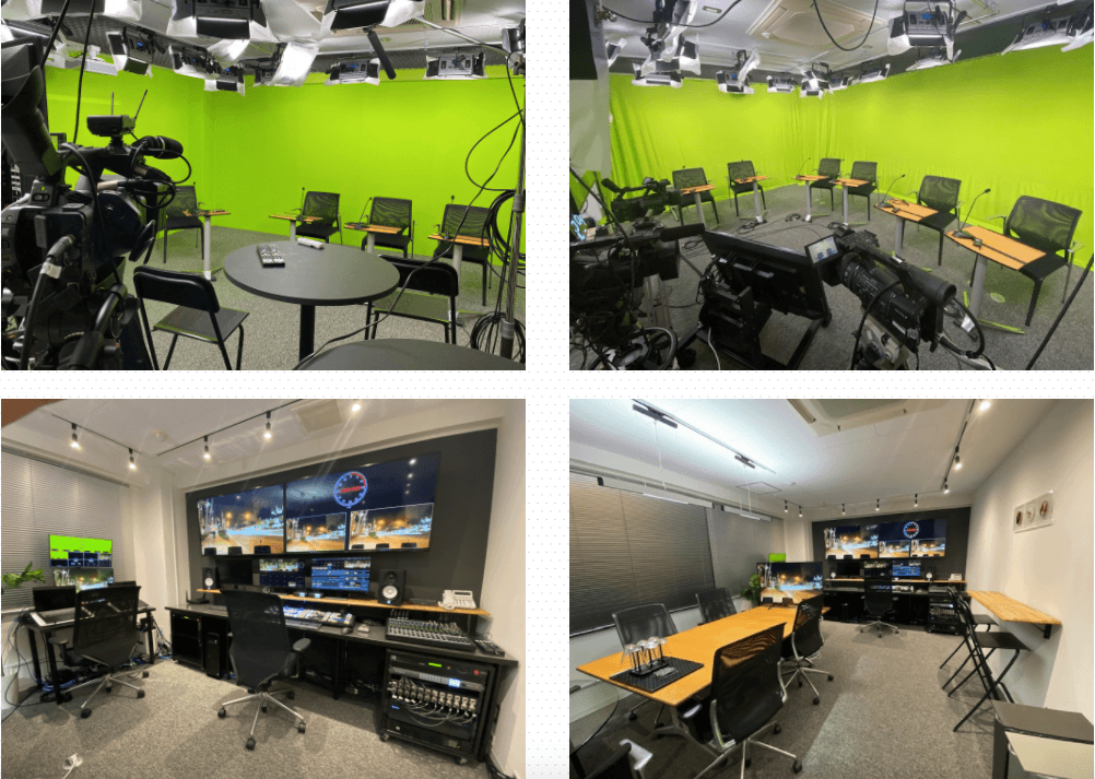 配信機材や専門人材の常駐が不要で、映像と音声はスタジオで構成・編集され、スタジオクオリティのコンテンツとしてライブ配信や収録が可能。
