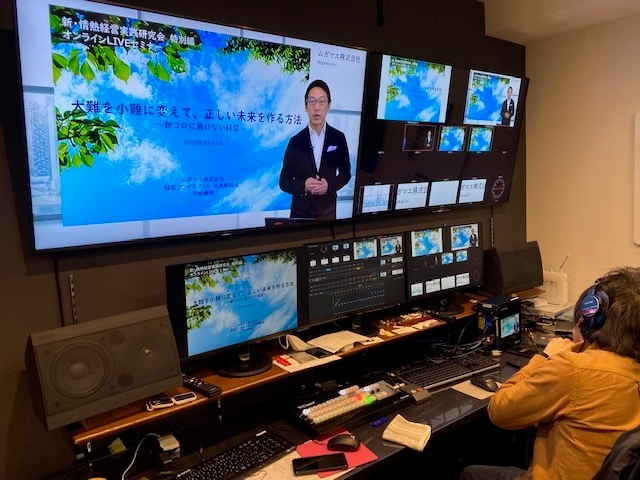 『ハイブリッド・ワン』は、会議室やセミナー会場に東京セミナースタジオが提供するネットワークカメラを常設し、スタジオとリアルタイムで接続することで、遠隔での撮影・演出・配信を実現する新しい配信モデルです。