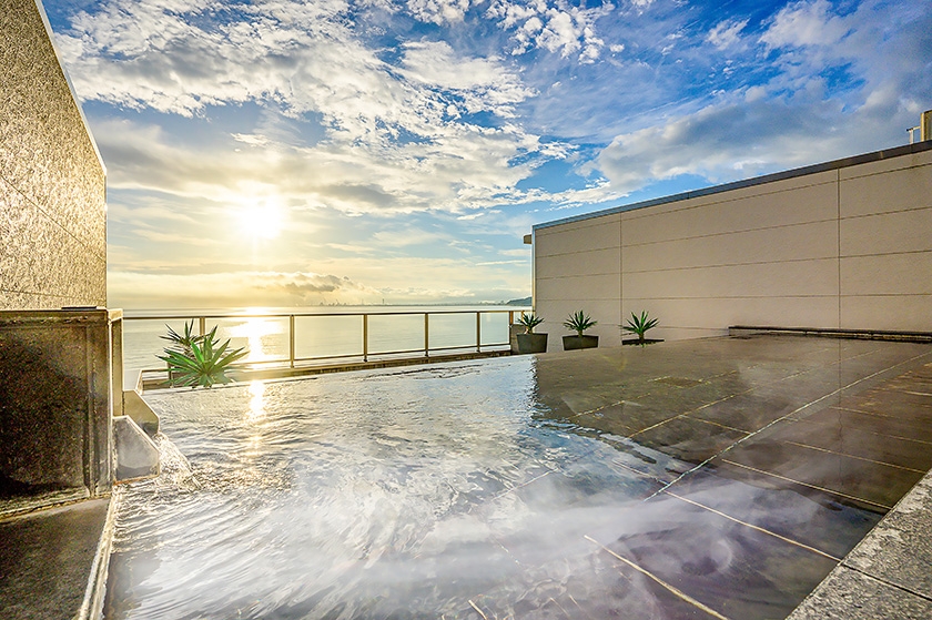 便利な街中ロケーションにありながら、別府湾を一望するロケーションを最大限に活かした露天風呂や、オーシャンビューの客室、最上階のレストランなど、開放的な雰囲気を満喫いただけます。