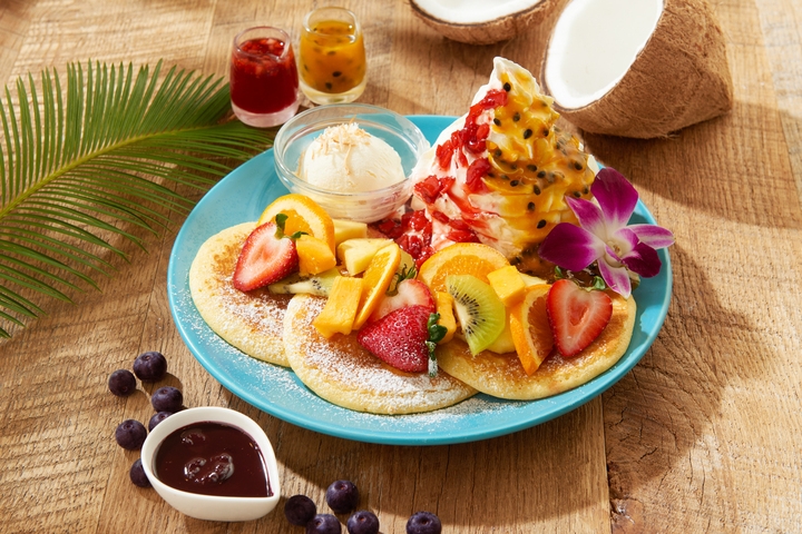 ハワイファン待望! 『アイランドヴィンテージコーヒー』初のパンケーキ 日本限定の2種類「コナ・モカ」「アサイー&トロピカルソース」が 12/1(火)デビュー!