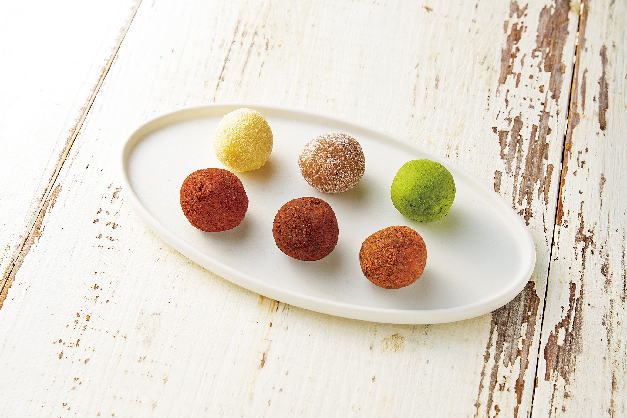 インドネシアの農家とともに品質を高めたカカオを使用。柑橘と茶が織りなすアロマが優雅な余韻を残す6種のトリュフ。
