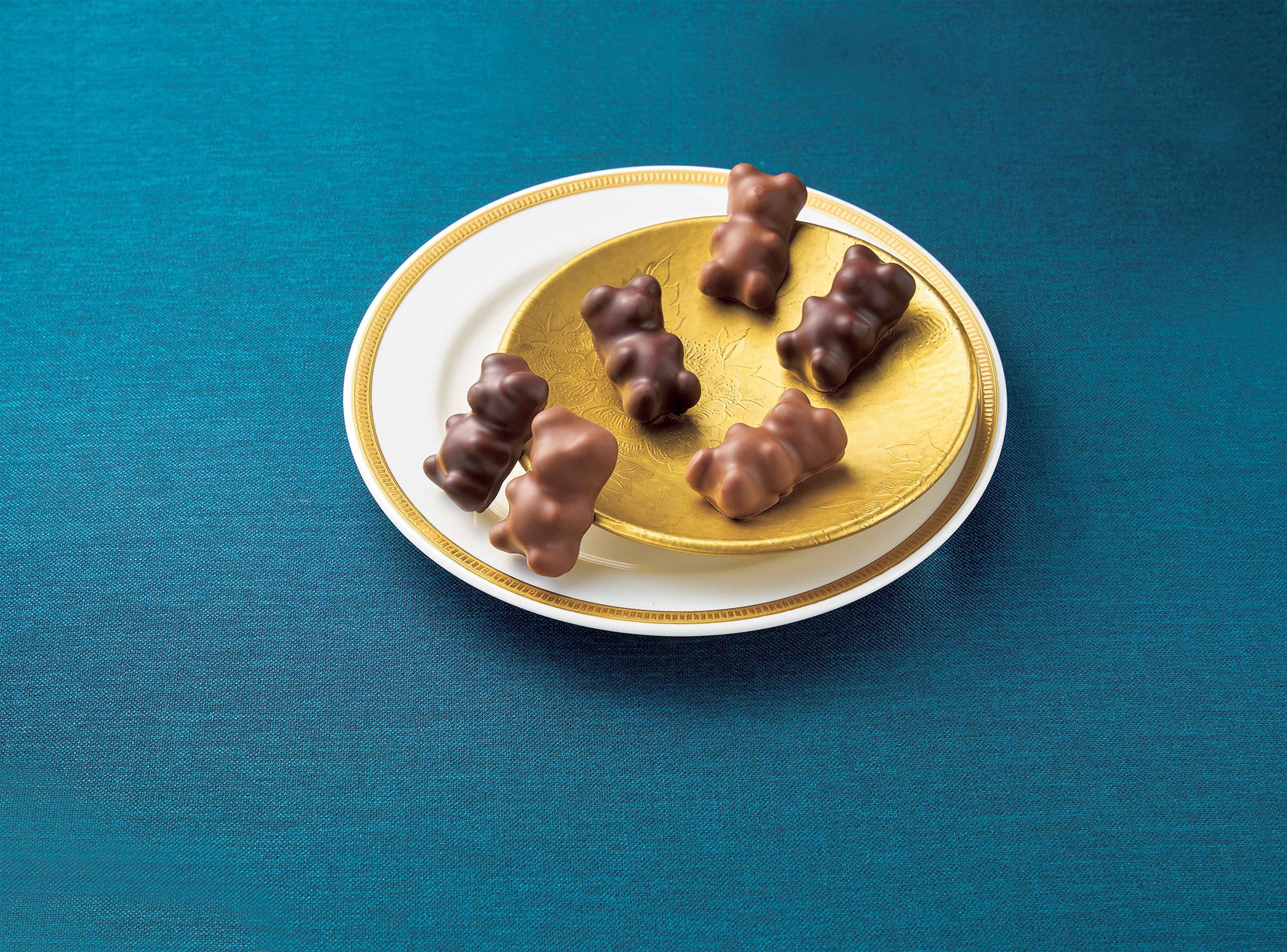 ふんわりと軽い食感のギモーヴを、カカオ63%のダークチョコと、カカオ39%のミルクチョコで包み、可愛いベア型に仕上げました。