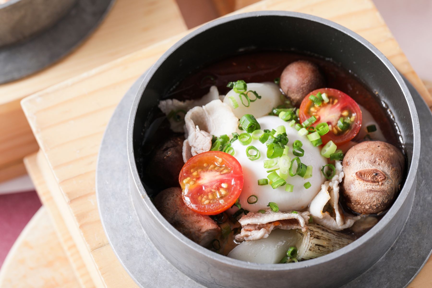 愛知県産金鯱しいたけとプチトマトのスンドゥブチゲ(イタリア×韓国)