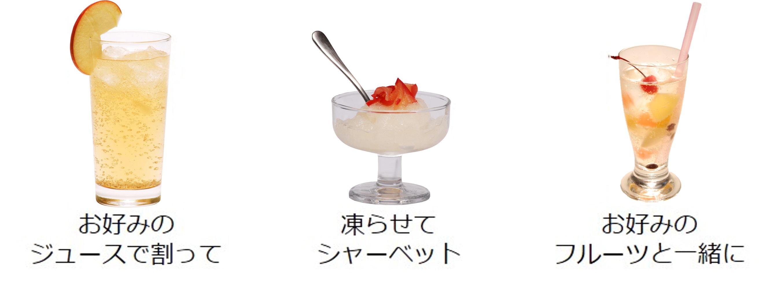 炭酸入りなのに振ってから飲むという意外な楽しさと、ぷるぷるした食感、国産果汁にこだわった人気の商品を、高級感のあるデザインにリニューアルします。本商品をよく冷やし、約10回振ることで、ひんやりぷるぷるした食感と、口の中でシュワっとはじける炭酸をお楽しみいただけます。お好みのフルーツをそえたりジュースで割ったり、ご家庭でも手軽にアレンジができ、“映える”お酒として家飲みを華やかに彩ります。