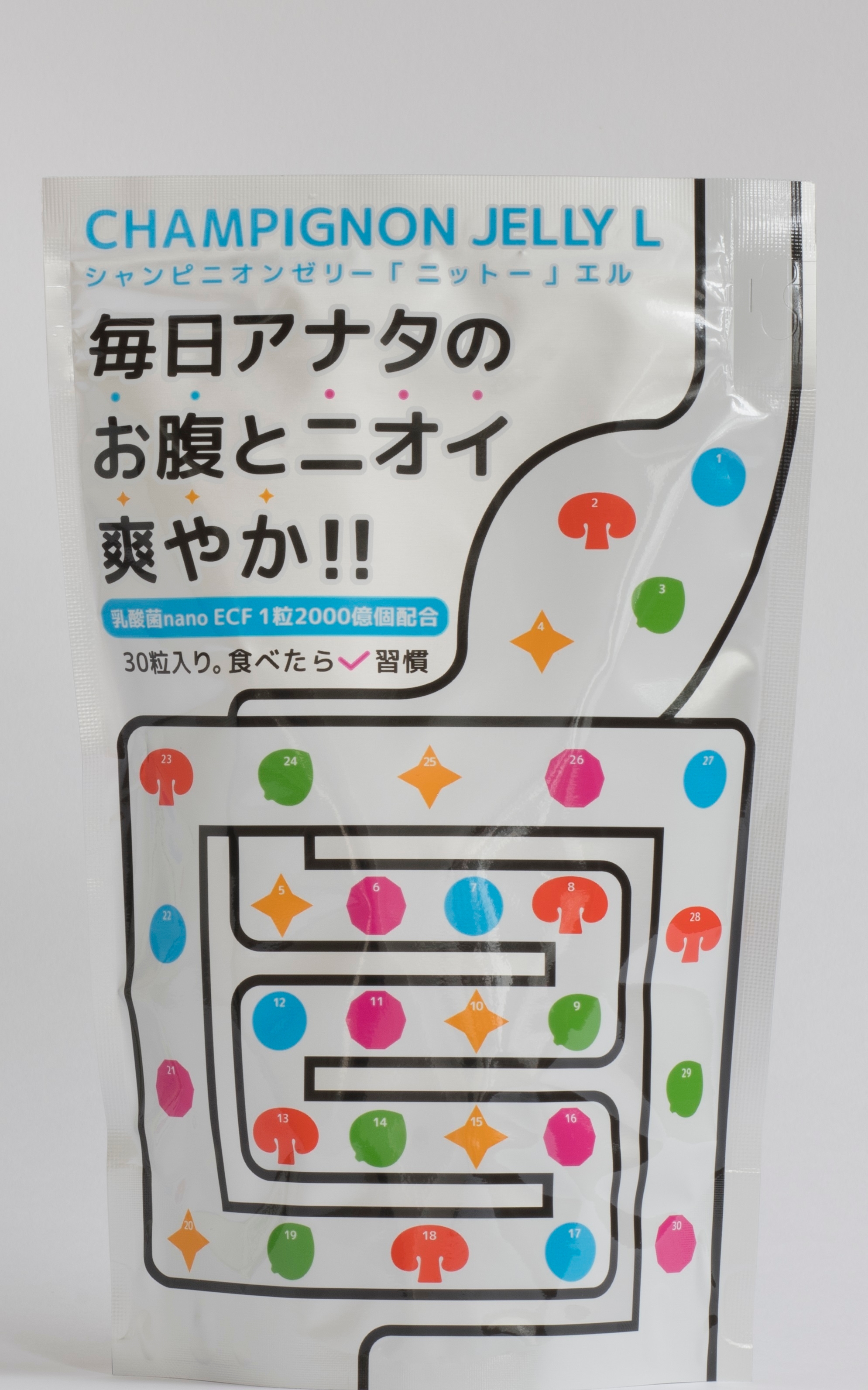 その中で、シャンピニオンゼリーは二千億個の乳酸球菌とマッシュルームから抽出したエキスを配合したうめ味のゼリーです。配合されている大量の乳酸球菌とシャンピニオンエキスには、排せつ物の消臭作用や身体の免疫力を高める作用などがあると長年実感されていて、災害時における被災者のニオイ対策、健康管理に役立つと考えられます。