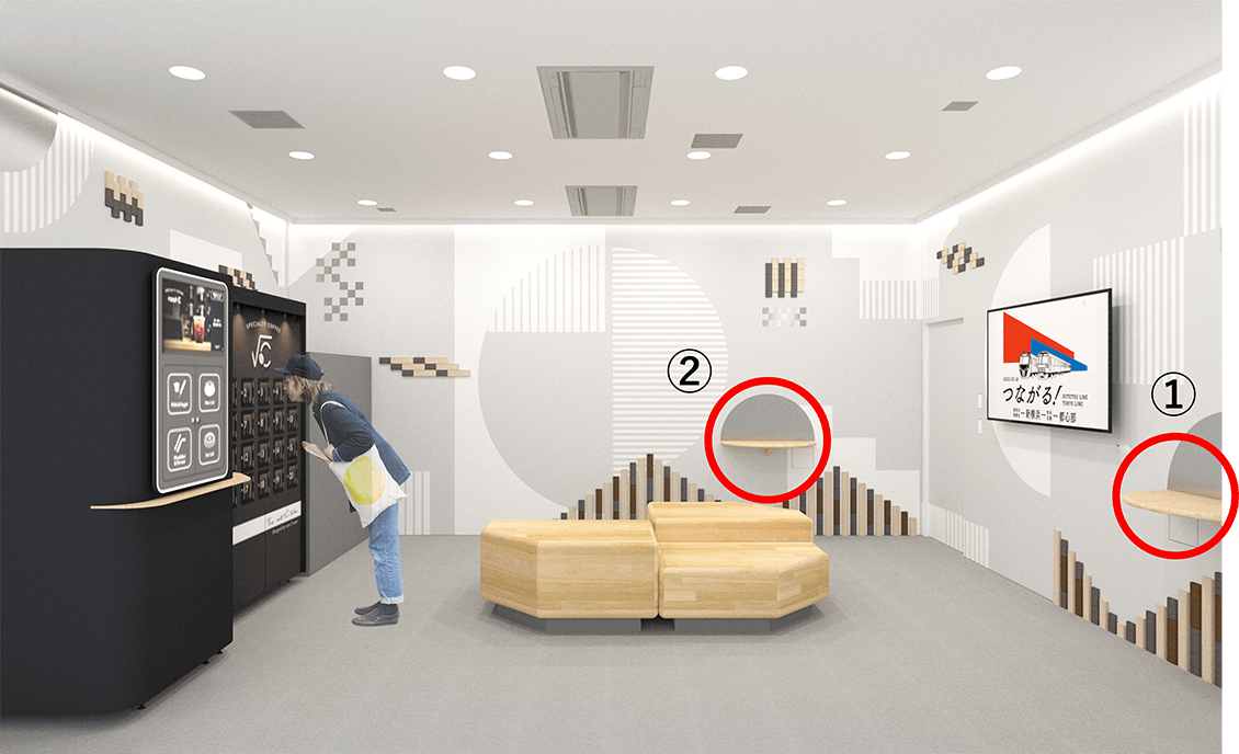 今回のワイヤレス給電プラットフォーム・POWER SPOT(R)導入は、日本で初めて駅舎内へ「50Wワイヤレス充電スポット」を導入する事例となります。本待合室は、3月25日(土)にオープンを予定しており、相鉄線、東急線、中部・関西方面の玄関口に位置していることから多くのご利用者様にベルデザインが構想する「いつでも、どこでも、ケーブルレスで電源にアクセスできるストレスフリーな新たなライフスタイル」をワイヤレス給電の体験を通じて提供して参ります。(下記図を参照)