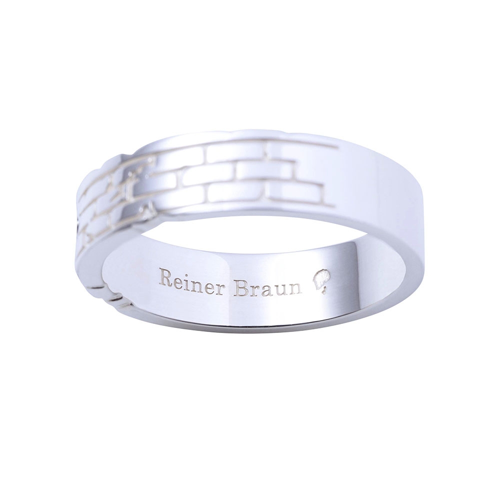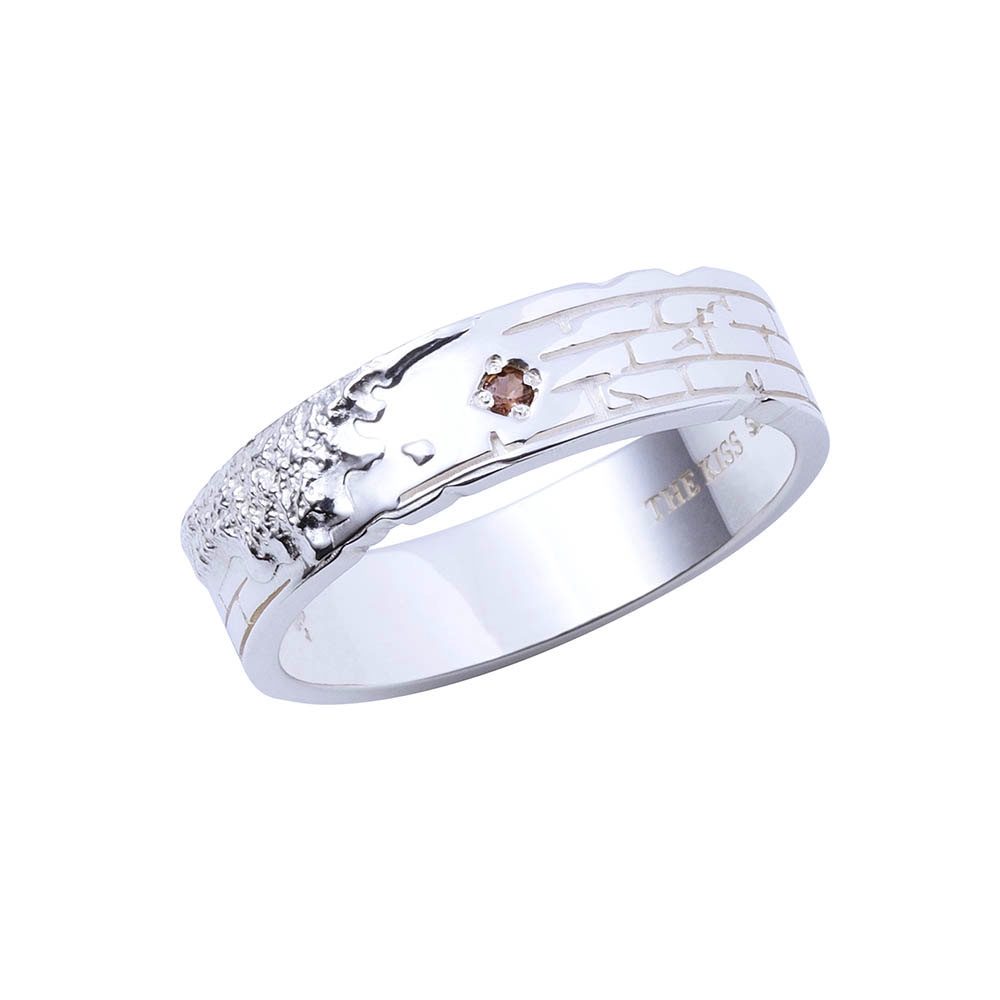 平打ちタイプのリングにレンガ調を取り込み、センターにはヒストリアをイメージしたピンクサファイアのストーンをセット。