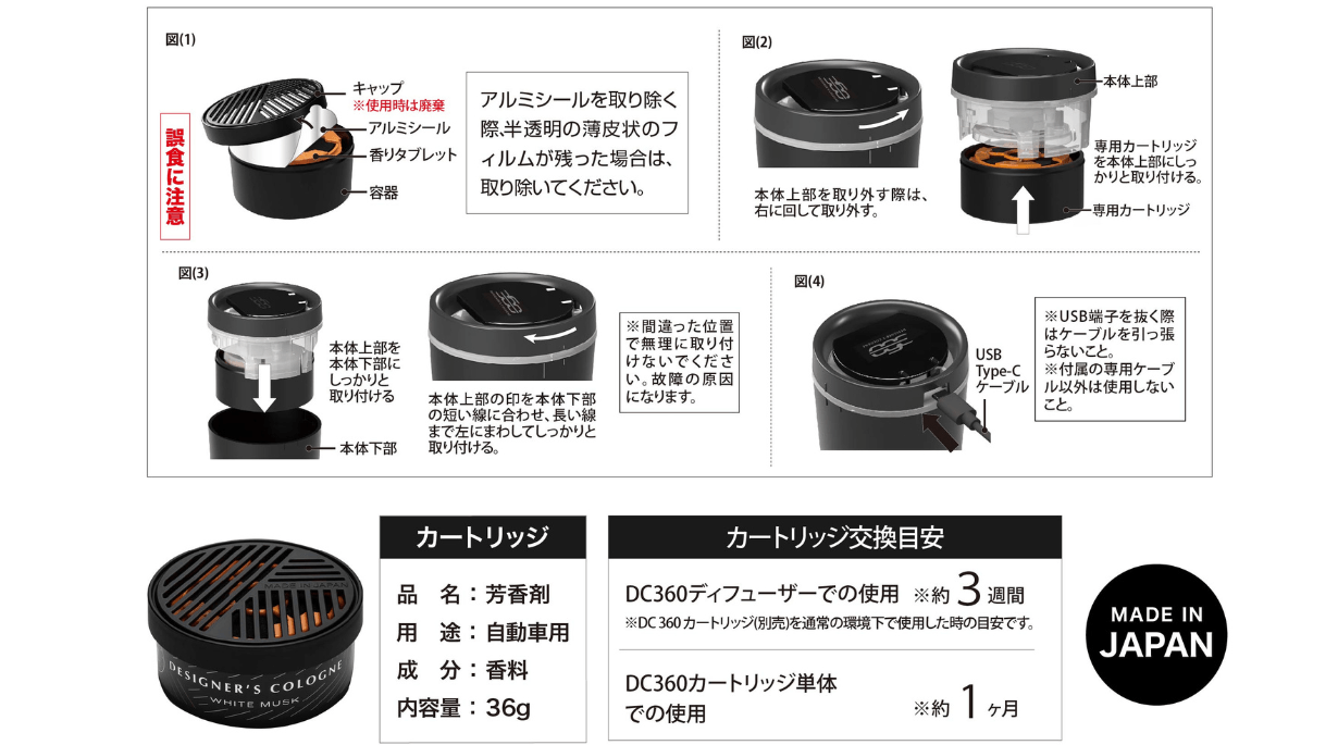 株式会社ダイヤケミカル(代表取締役:渡辺忠雄)は「未来の芳香剤」をテーマに香りをより効率よく拡散させるファン式芳香ディフューザーと、単体でも使用可能なカートリッジのラインナップで開発した「DC360 DIFFUSER」を