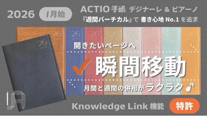 開きたいページへ瞬間移動! 書き心地No.1を追求する週間バーチカル型 「2026 ACTIO手帳 デジナーレ&ピアーノ」を同時リリース