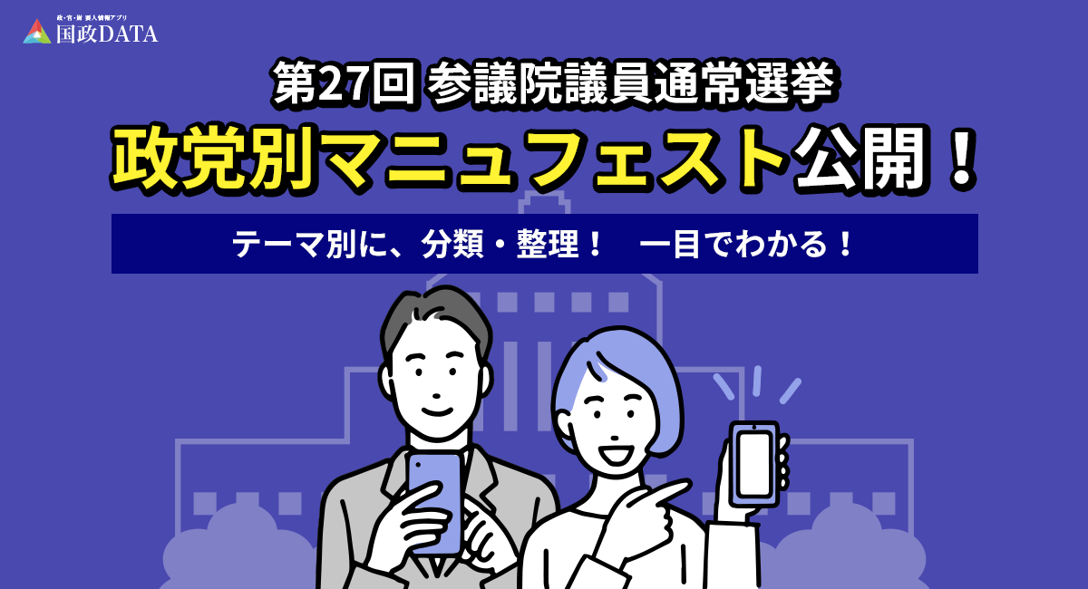 2025年参議院選挙のマニュフェストをテーマ別に簡単比較 政・官・財 要人情報アプリ「国政DATA」にて公開
