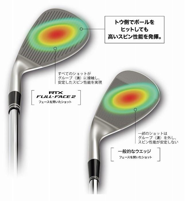~フェース全面に施したグルーブ(溝)とロフト別に最適設計したフェース加工で精度の高いショットを実現~