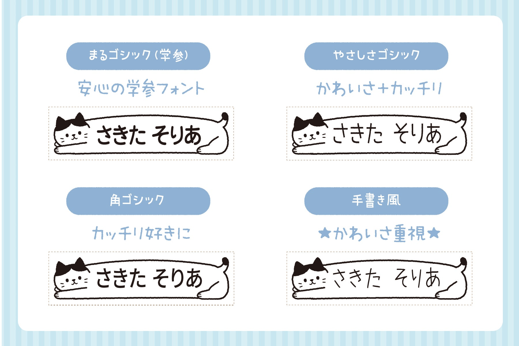 学参・旧字に対応した「まるゴシック」からかわいい「手書き風」まで、全4種類のフォント(書体)から選ぶことができるようになりました。また、ひらがなだけではなく漢字やローマ字にも対応しています。