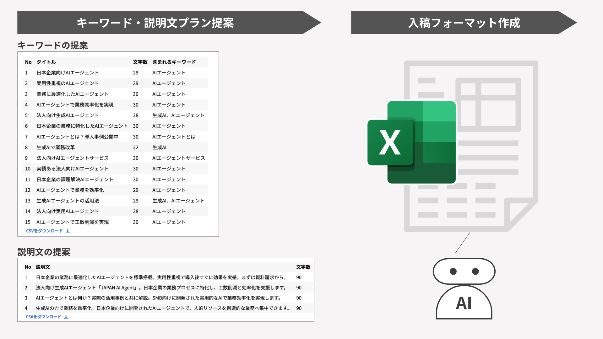 キーワードの情報収集・分析から入稿フォーマット作成までを自動化