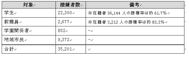 学生・教職員・学園関係者など35,201人の接種を実施
