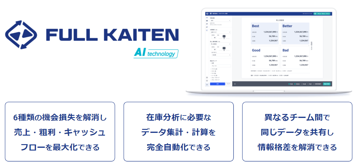 売上・粗利・キャッシュフローを最大化する在庫DXツール『FULL KAITEN』
