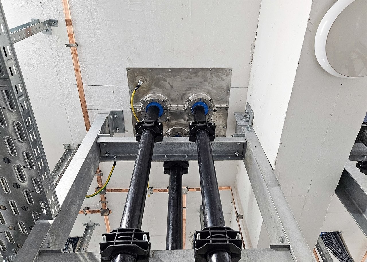 ケーブル敷設が済むまで現場を乾燥した状態に保つため、PVC 管は Roxtec ノックアウトスリーブで事前に密閉されました。
