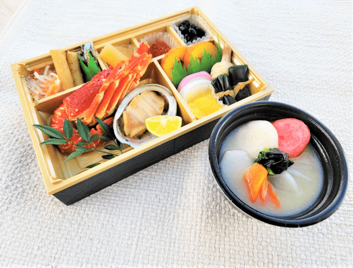 「プレミアムプラン」は、本プラン専用の60階ラウンジスペースにてお寛ぎいただき、初日の出はヘリポートでご鑑賞いただけます。ご鑑賞後は58階「天空庭園」に設置された「こたつ席」または「掘りごたつ席」でおせち料理やお雑煮をお召し上がりいただけます。