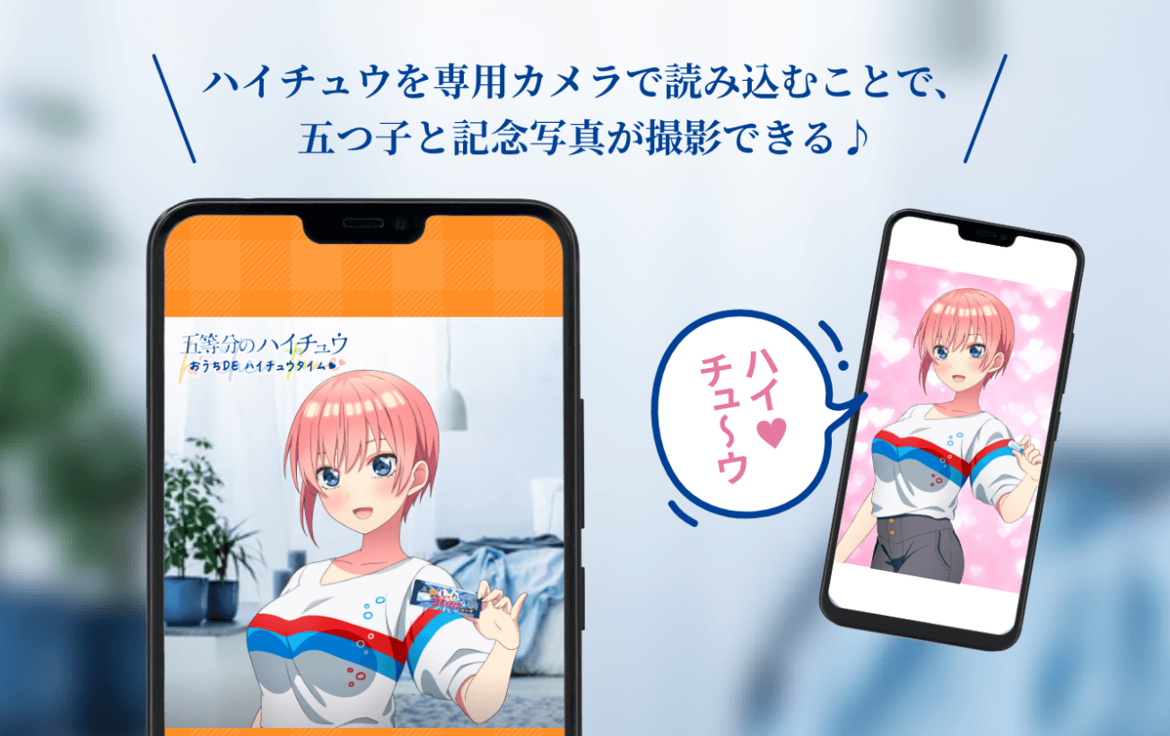 1.\専用カメラでハイチュウを読み取ることで五つ子と記念撮影できる「おうちで五つ子カメラ」/