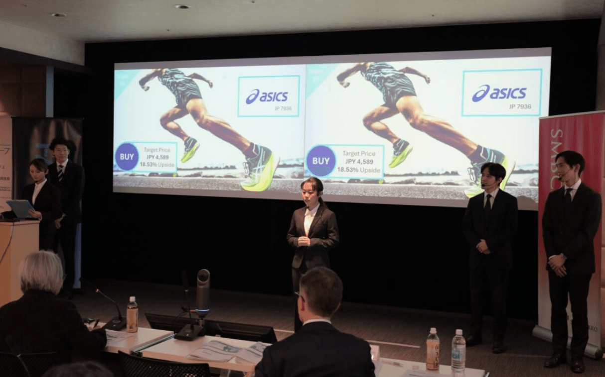 CFA協会リサーチ・チャレンジ2025-2026の日本大会には、国内著名大学から37チームが参加しました。各参加チームは、株式会社アシックス(代表取締役会長 CEO 廣田 康人、代表取締役社長 COO富永 満之、本社神戸市、以下「アシックス」)を分析対象企業とし英語による分析レポートを提出しました。書類審査結果で上位8チームが日本大会決勝にて英語によるプレゼンテーションと質疑応答を行い、見事京都大学Cチームと名古屋大学Aチームが優勝しました。また株式会社アシックス財務部部長辻上 和也様から、日頃IR活動では財務指標だけでなく、コア競争優位性であるマネジメント、持ち合い解消、優秀なプロダクトについて説明しており、これがアシックス成長を持続可能にするものと考えているが、早稲田大学Aチーム(指導教官:小倉 義明教授、メンター:Lian Jing(三菱UFJモルガン・スタンレー証券株式会社))は、このコア競争優位性を的確に捉えてくれたとして「アシックス賞」が授与されました。