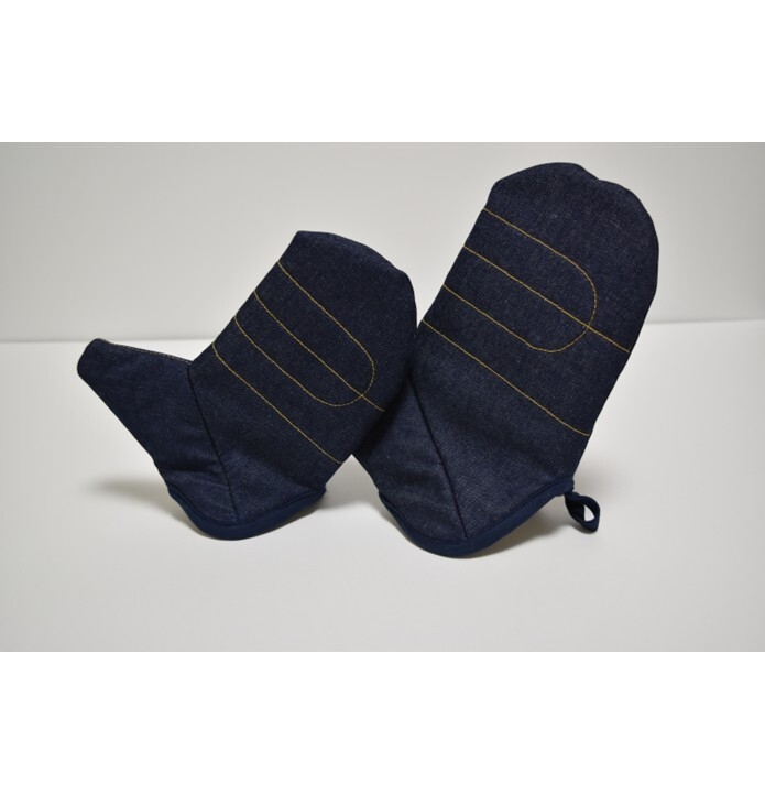 この毛布を中心に、帆布(またはデニム)など丈夫な素材を重ねることで、さらに優れた耐熱性を実現しました。一般的な家庭用オーブンで設定できる高温度200℃のものを5秒持っても熱さを感じないという試験結果も出ています。毛布を再利用することで、高い耐熱性と環境配慮の両立を叶えました。