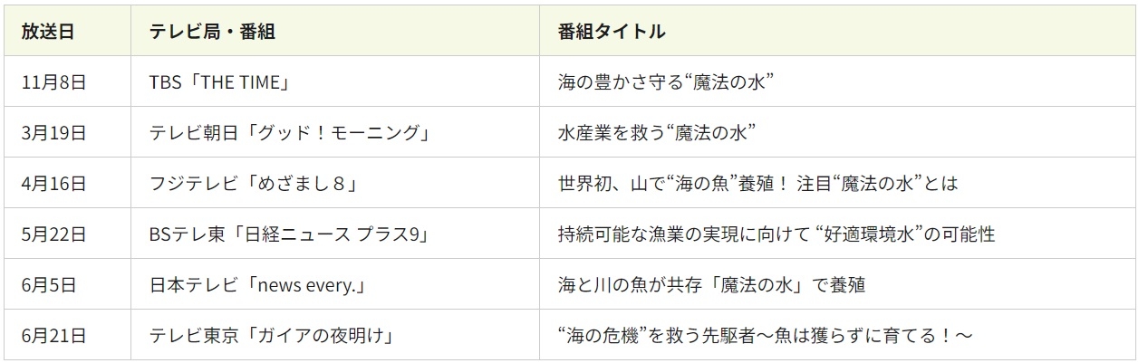 好適環境水を使った岡山理科大学の陸上養殖研究に対する全国ネットのテレビ局の取材・放送が相次いでいます。2023年11月8日にTBSの情報・報道番組「THE TIME」で放送されたのに続いて、今年に入ってから6月21日のテレビ東京「ガイアの夜明け」まで立て続けに6件の番組の取材が続きました。