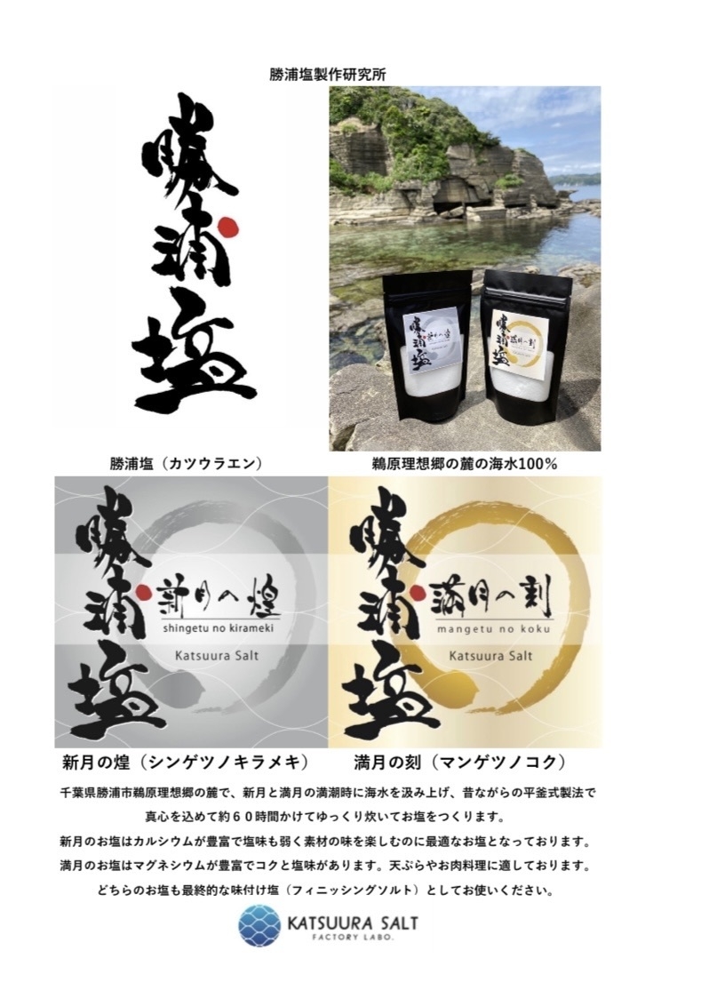 勝浦塩製作研究所(かつうらえんせいさくけんきゅうじょ、所在地:千葉県勝浦市、代表:田井 智之)は、勝浦市鵜原理想郷の海水を使い、天日干しではなく敢えて平釜式製法でのピラミッドソルト開発に挑戦し、新たな釜とビニールハウス施設を増設するための資金をクラウドファンディング「ちばぎん商店 | C-VALUE(シーバリュー)」にて2023年7月20日より募集しております。本プロジェクトは、9月30日まで実施いたします。