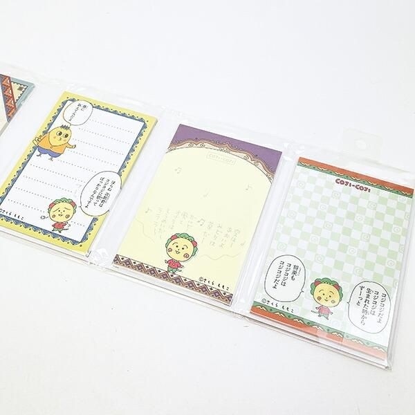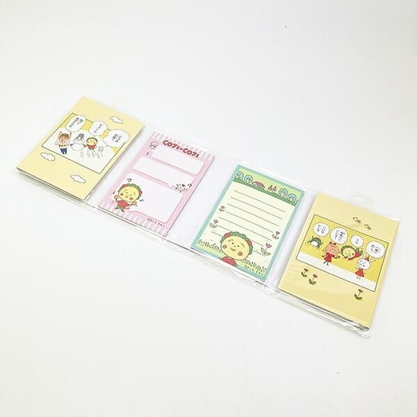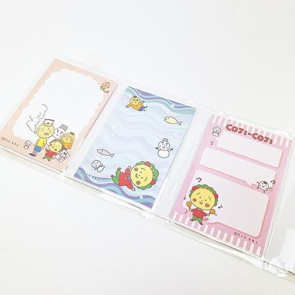 メモは6柄とたくさんの絵柄を堪能できてしまうのがこのアイテムの最高なポイント。コジコジらしいちょっとレトロでおしゃれなデザインに愛らしいキャラクターがずっと見ていたくなります、、!次郎くんとのやり取りを感じさせるデザインもありなんだかほっこりします。ちなみに各柄20枚入りとたっぷり楽しめるのも最高です。サイズ:11cm×7.5cm×2cm 素材:紙