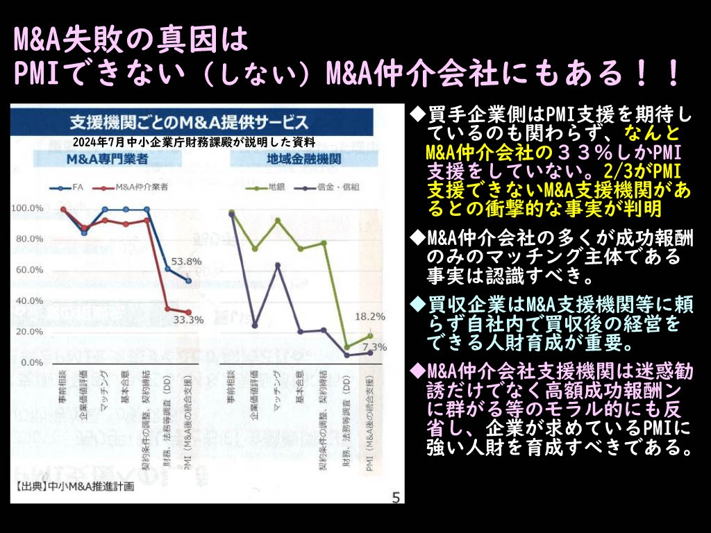 買収企業はこのような高額な成功報酬を要求するモラルM&A仲介会社に頼らず自社内で買収後の経営をできるPMIできる人財育成が重要です。